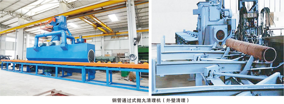 工藝簡介:鋼管外壁拋丸清理機(jī)主要用于鋼管及鋼管類產(chǎn)品的外表面清理,不但可以去除鋼管外壁的氧化皮或銹蝕,還可以消除工件的應(yīng)力,提高工件的抗疲勞強(qiáng)度,達(dá)到規(guī)定的粗糙值與硬度,并最終達(dá)到提高整個(gè)工件表面及內(nèi)在質(zhì)量的目的。